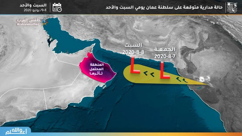 طقس العرب - سنان خلف - يراقب كادر التنبؤات الجوية في طقس العرب التحرك والتطور السريع والمُلفت للحالة المدارية التي لاتزال تتمركز الى الشرق من بحر العرب، والتي يُتوقع أن تتحرك سريعاً نحو الغرب لتؤثر على سلطنة عُمان بشكلٍ مُباشر اعتباراً من يوم السبت، جالبة معها الأمطار الرعدية الغزيرة.