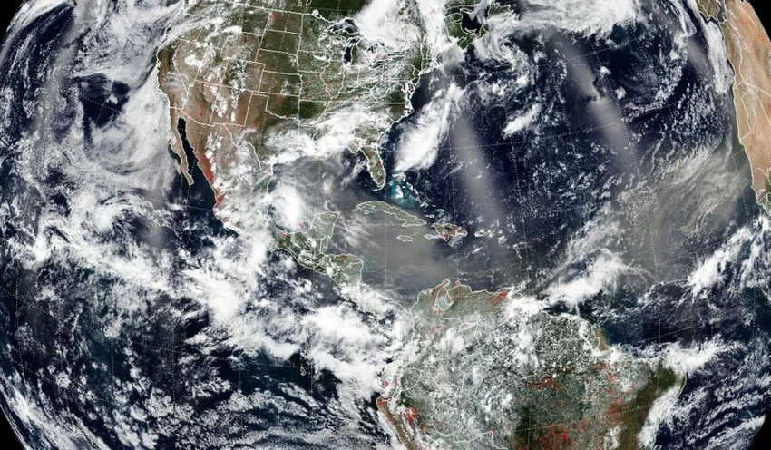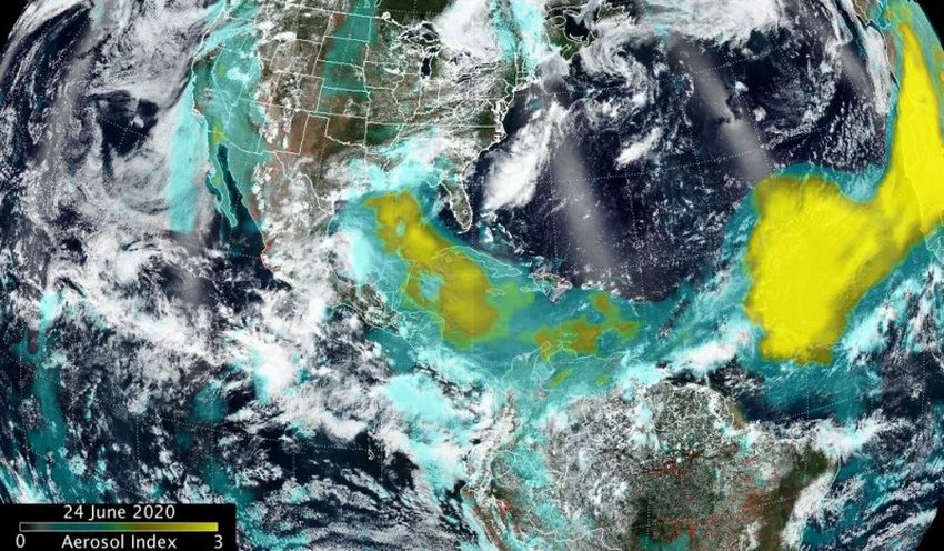 طقس العرب- رصدت صور الأقمار الاصطناعية لـ "ناسا"، عاصفة رملية ضخمة تتحرك فوق خليج المكسيك وامتدت إلى أمريكا الوسطى وعلى جزء من شرق المحيط الهادئ قادمة من الصحراء الافريقية.