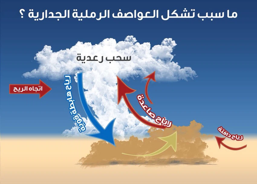 تعيش المملكة وبلاد الشام وخاصة المناطق الشرقية منها وصولاً الى السعودية والجزيرة العربية أحوال جوية غير مُستقرة مُتمثلة بتشكل السُحب الرعدية والتي تركز تكونها فوق مناطق صحراوية، ومن المُتعارف عليه أن السُحب الرعدية في حالات عدم الاستقرار الجوي تترافق علمياً بمايعرف بالرياح الهابطة، والرياح الهابطة ("downburst") هي رياح سطحية قوية تنبعث من مصدر علوي وتضرب سطح الأرض بشكل شعاعي، وبخطوط مستقيمة في جميع الاتجاهات.وغالبا ما تكون رياح ضارة.