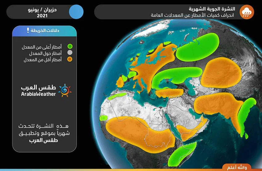 ويرتبط ارتفاع مؤشر ENSO بتحسن فرص الامطار احصائيا في الجزيرة العربية والقرن الافريقي، ونظرا لقرب انتهاء فصل الربيع، فان الامطار ستتركز في الأجزاء الجنوبية من الجزيرة العربية إضافة الى السودان والصومال.