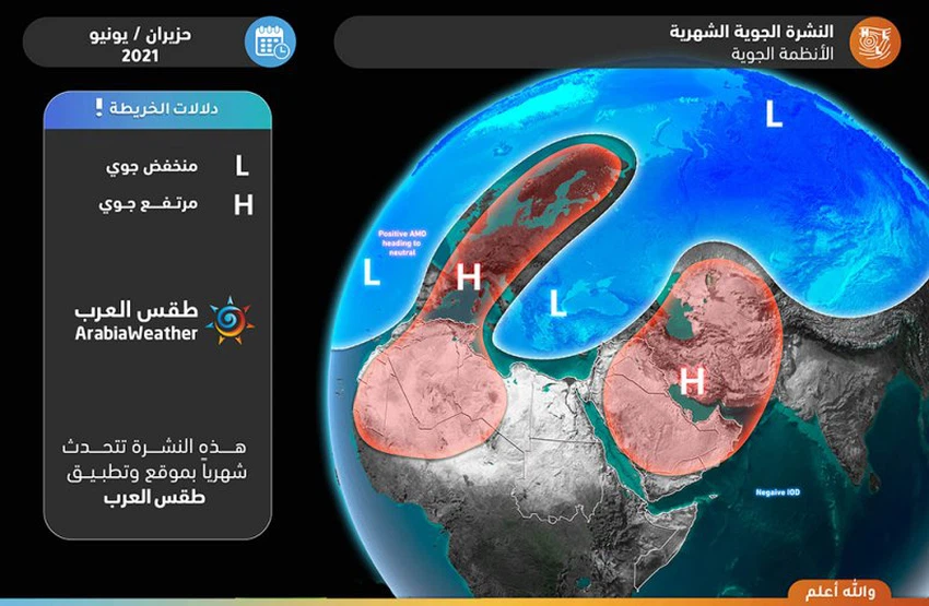 يسلك مؤشر IOD قيم متعادلة ويتوقع ان ينخفض الى القيم السالبة خلال الشهرين المقبلين، حيث تنخفض فرص تشكل حالات جوية مدارية في المحيط الهندي وبحر العرب خلال الصيف الحالي، كما يؤثر وبشكل اقوى على ضعف فرص الامطار داخل الجزيرة العربية والقرن الافريقي، حيث f]h واضح جليا انخفاض فرص الأمطار والسيول خلال الفترة الحالية وبخاصة خلال توقعات النماذج العالمية.