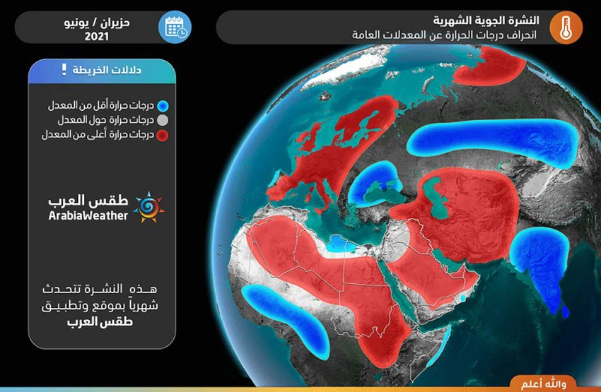 يتعاظم المرتفع الجوي شبه المداري خاصة على إيران وشرق الجزيرة العربية، مع اندفاع منخفضات جوية باردة نحو شمال ووسط القارة الأوروبية امتدادا لوسط البحر المتوسط، قد تعمل على نشاط منخفض البحر الأحمر بشكل ضعيف ويؤدي ذلك الى الطقس أكثر حرارة من المعتاد في معظم المناطق، مع بقاء فرص الامطار واردة خاصة في جنوب غرب السعودية واليمن كما يُتوقع تزايد نشاط رياح البوارح بحيث تشمل أجزاء واسعة من شرق ووسط السعودية ودول شرق الخليج العربي.