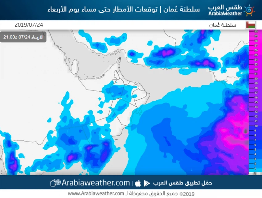 طقس العرب - سنان خلف - من المُتوقع بمشيئة الله أن تكون حالة الطقس في سلطنة عُمان يوم الأربعاء على النحو التالي: