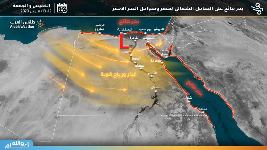 تترافق الحالة بنشاط للرياح الشمالية الشرقية على شمال وغرب البلاد بحيث تكون مثيرة للغبار والأتربة ببعض هذه المناطق خاصة التي لها ظهير صحراوي، بينما تكون شرقية إلى جنوبية شرقية نشطة السرعة مثيرة للغبار على جنوب ووسط الصعيد.