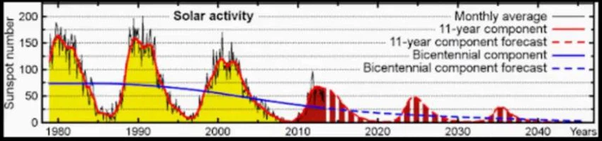 ويشير بعض العلماء إلى إمكانية تكرار الفترة الباردة التي أثرت على الأرض خلال 1790- 1830 والتي تسمى بالعصر الجليدي المصغر (Dalton minimum type cooling)، فيما يرى آخرون إمكانية تكرار الفترة 1645-1715 (Maunder minimum type cooling).
