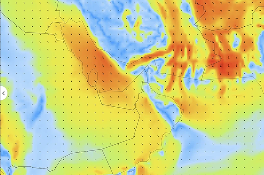 وتتحول الرياح لاحقاً من مساء الجمعة الى يوم الأحد الى رياح شمالية شرقية نشطة السرعة تعبر بشكل رئيسي على سواحل السلطنة الممتدة من مسندم وحتى ظفار، تعمل على اضطراب أكبر في البحر مع استمرار تصاعد الغبار والاتربة على المناطق السهلية والصحراوية.