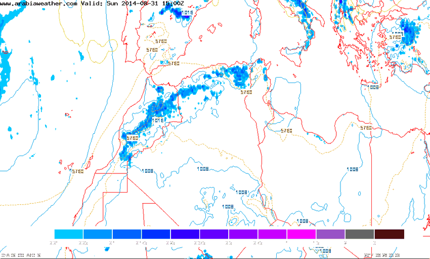 موقع ArabiaWeather.com – يتوقع بمشيئة الله أن تتسع رقعة المناطق الجبلية المُتأثرة بالعواصف الرعدية الماطرة في المغرب العربي اعتباراً من يوم السبت 30-8-2014، حيثُ تمتد الفرصة لتشمل أجزاء واسعة من جبال أطلس في شمال الجزائر بعد hن كانت مُقتصرة تقريباً على الجبال المغربية.