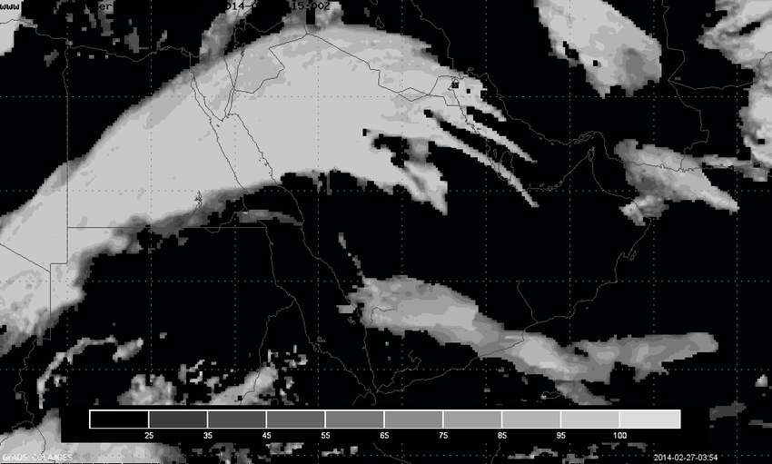 تندفع نحو شمال المملكة نهار السبت كميّات كبيرة من السُحُب العالية وذلك في إشارة على بدء اندفاع الرطوبة المدارية إلى طبقات الجو المُختلفة، و يستمر تدفق السُحُب بهذا الشكل يوم الأحد أيضاً.