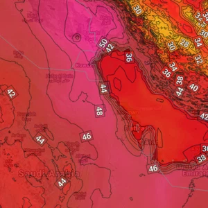حيث تصل الحرارة أقصاها خلال أيام الثلاثاء وحتى نهاية الأسبوع وتكون 47-48 مئوية في المناطق الداخلية من المنطقة الشرقية، فيما تكون حول 42-44 مئوية في المناطق الساحلية.
