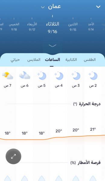 و يُتوقع بمشيئة الله أن تندفع كتلة هوائية خريفية و ذات درجات حرارة أقل من القارة الأوروبية لأجواء الأردن و ذلك اعتباراً من يوم الثلاثاء 2025/9/16 و لِعدّة أيام و تتسبب بانخفاض على درجات الحرارة لتُصبح حول مُعدلاتها المُعتادة نسبةً لمثل هذا الوقت من العام، و يتحول الطقس ليُصبح معتدلاً في أغلب المناطق نهاراً و حاراً نسبياً في الأغوار و البحرالميت و العقبة.
