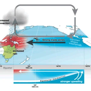 تُعرف ظاهرة اللانينا بانخفاض درجات الحرارة عن معدلاتها 0.5 درجة مئوية فأكثر في شرق المنطقة الاستوائية في المحيط الهادي، وترتبط ظاهرة اللانينا احصائياً بمواسم خصب على استراليا واندونيسيا حيث تؤدي إلى اضطرابات حادة في حركة الغلاف الجوي، لأنها تتحكم بنسبة كبيرة في حركة التيارات النفاثة شبه المدارية وبعض الأنظمة الجوية مثل الأعاصير والمرتفعات الجوية شبه المدارية، وهو ما يؤدي الى تشكل فيضانات في عدة مناطق، يُقابلها جفاف في مناطق أخرى.