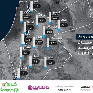كميات الأمطار المسجلة لغاية الساعة 7:00 مساءً بحسب محطات الرصد الجوي الخاصة لطقس العرب:
