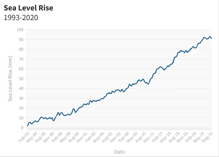 (يوضح الشكل ارتفاع مستوى البحار في الفترة من 1993 وحتى 2020)