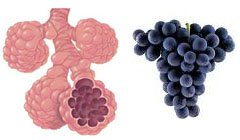 العنب، خصوصاً العنب الأسود، يشبه الحويصلات الهوائية في الرئتين. تسمح الحويصلات الهوائية بمرور الأوكسجين من الرئتين إلى الدورة الدموية. وقد أثبتت دراسات علمية أن التركيز على تناول العنب الطازج يخفف من خطر الإصابة بسرطان الرئة ! تحتوي بذور العنب أيضاً مادة تسمى proanthocyanidin تحدّ من مشكلة الربو الذي تسببه الحساسية.