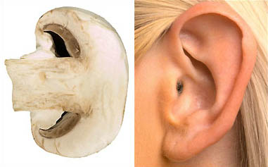 الفطر المقطوع نصفين له شكل الأذن البشرية، والفطر مهم لصحة الأذنين ! إنه مصدر ممتاز للفيتامين D، الذي يلعب دوراً أساسياً في الوقاية من فقدان السمع. إذن اسمعوني جيداً : كلوا الفطر !