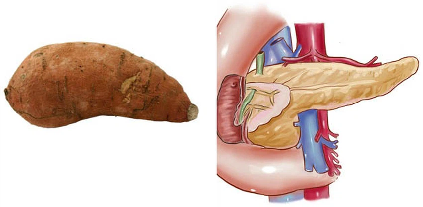 تشبه البطاطا الحلوة البنكرياس بشكل مدهش، وقد ثبت علمياً أنها تساعد البنكرياس على أداء عمله في تثبيت مستوى السكر في الدم. البطاطا الحلوة غنية أيضاً بشكل طبيعي بالفيتامين B9، التي أظهرت الدراسات أنه يمنع نمو سرطان البنكرياس !