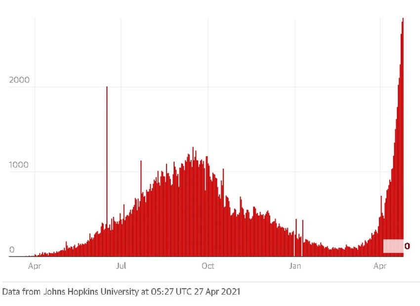 (عدد الوفيات اليومية منذ بدء الجائحة حتى يوم 27 ابريل)
