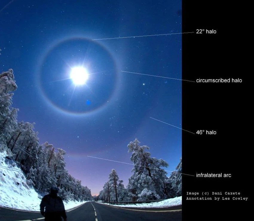 ويجدر بالذكر أن هذه الهالات يمكن أن تظهر كذلك حول الشمس عندما تتوفر الشروط لتكونها.