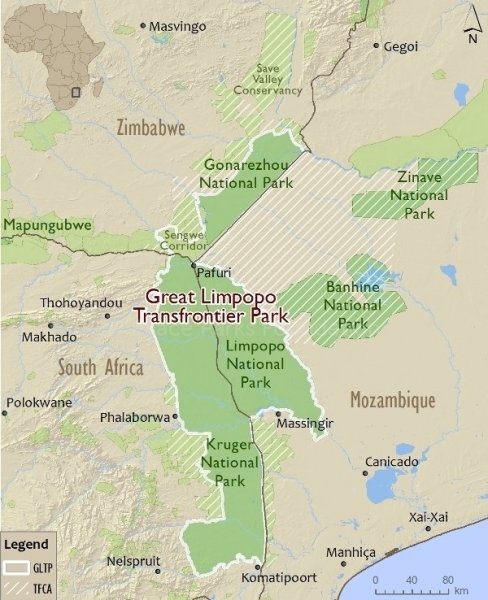وتضم كلا من حديقة ليمبوبو الوطنية في موزمبيق، حديقة كروجر الوطنية في جنوب أفريقيا، حديقة غوناريزو الوطنية، محمية مانجينجي بان ومنطقة سفاري ماليباتي في زيمبابوي، فضلا عن منطقتين ماكوليكي في جنوب إفريقيا بين كروجر و غوناريزو، وأراضي المشاع سينغوي في زيمبابوي.