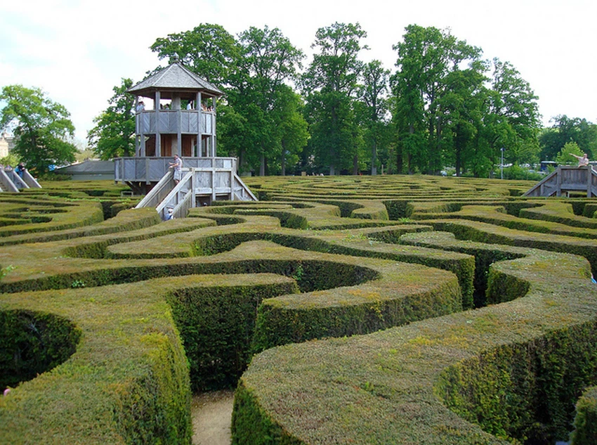 يبلغ ارتفاع السياج النباتي للمتاهة حوالي 2.5 متر ووتوجد بها 6 جسور وبرج للمراقبة المركزية لمساعدتك على البحث عن نهاية المتاهة الموجودة في البرج الطويل الذي يقع في الوسط، وللوصول إلى تلك النهاية لا يجب عليك الذهاب على الجانبين ولكن بالاتجاه إلى المركز.