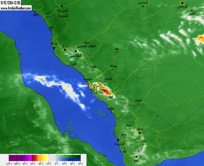 يزداد تأثير هذه الكتلة الهوائية على سواحل البحر الأحمر نهاية الأسبوع، ويلاحظ عبر صور الأقمار الاصطناعية تطور السحب الرعدية على مناطق من جنوب ووسط البحر الأحمر، هذه المناطق غير المستقرة يتوقع أن تنتقل تدريجياً إلى السواحل الوسطى والجنوبية ومن ضمنها مدينة جدة بمشيئة الله.