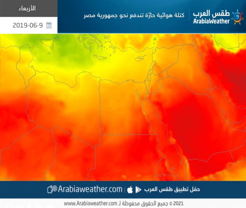 طقس العرب - من المُنتظر أن تتأثر عموم جمهورية مصر بكُتلة هوائية حارة وجافة يوم الأربعاء، تنعكس بارتفاع ملموس على درجات الحرارة أي بشكلٍ كبير ولافت.