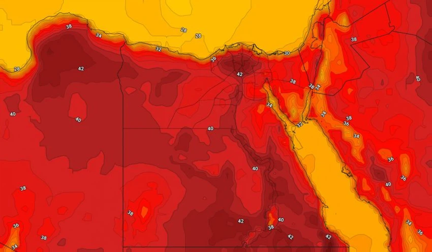 طقس العرب - يُتوقع أن يتزايد تأثر عموم جمهورية مصر بالكتلة الهوائية الحارّة المُسيطرة اصلاً على الجمهورية، ومصاحبة للمرتفع العلوي مما يعمل على ارتفاع تدريجي بدرجات الحرارة كما تترافق بامتداد لمنخفض الأحمر الموسمي وهو منخفض حراري، يؤثر على معظم المناطق من شرق وجنوب ووسط البلاد مما يعمل على زيادة في درجات الحرارة على هذه المناطق.