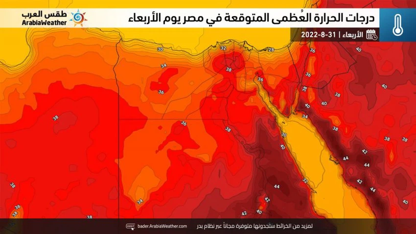 ولا يُتوقع أن يطرأ تغيُر جذري على الأجواء خلال الأيام القادمة، بحيث تبقى درجات الحرارة ضمن مُعدلاتها المُعتادة إلى أعلى بقليل، بحيث تكون الأجواء حارة شمالاً وصولاً حتى شمال الصعيد، وشديدة الحرارة جنوباً. يُذكر أن يوم الأربعاء يُصادف أخر أيام فصل الصيف بحسب رُزنامة علم الأرصاد الجوية.