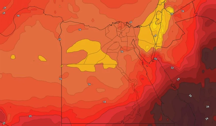 طقس العرب - يستمر تأثر مصر خلال الأيام القليلة القادمة بامتداد لمرتفع جوي سطحي بحيث يستمر اندفاع تيارات هوائية شمالية مصدرها البحر المُتوسط تعمّل على استمرار درجات الحرارة حول إلى دون معدلاتها الاعتيادية في أغلب المناطق بالتزامن مع ضعف المرتفع الجوي شبه المداري.