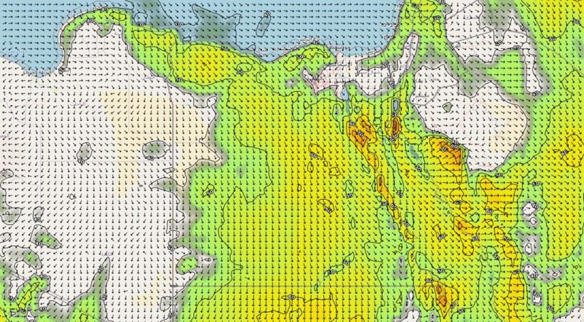 تكون الرياح شمالية إلى شمالية شرقية مُعتدلة السرعة، تنشط احياناً في أجزاء واسعة من مصر، تَتَرافق مع هبات قوية احياناً لاسيما ساحل بحر الأحمر وخليج السويس، في حين تكون مُثيرة للغبار في بعض المناطق، وتكون الأمواج عالية بالبحر الأحمر لاسيما خليج السويس مما يعمل على اضطراب بحركة الملاحة وبعض الأنشطة البحرية، بينما تكون معتدلة بالبحر المتوسط.