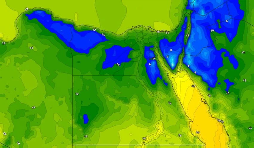 طقس العرب - أشارت أحدث مُخرجات النماذج العددية الحاسوبية في مركز طقس العرب بأن مصر تبقى تحت تأثر اندفاع كُتلة هوائية ربيعية ذات درجات حرارة أقل من ما هو مُعتاد عليه لمثل هذا الوقت من العام، ستعمل على حدوث انخفاض ملحوظ على درجات الحرارة وزيادة في سرعة الرياح التي ستكون مُثيرة للأتربة في المناطق الصحراوية والمكشوفة.