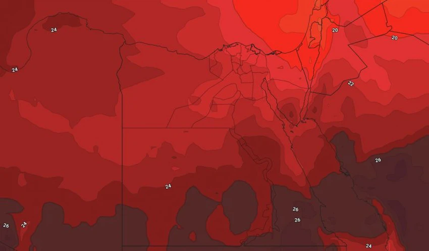 طقس العرب - يتعمق تأثر جمهورية مصر يوم الجمعة بالكتابة الهوائية الحارة المُندفعة عبر الاراضي الليبية، بحيث يطرأ مزيد من الارتفاع على درجات الحرارة لتكون اعلى من مُعدلاتها الإعتيادية نسبةً لهذا الوقت من العام بحوالي 11-12 درجة مئوية، ويكون الطقس حاراً إلى شديد الحرارة في مُختلف المناطق وتلامس درجات الحرارة في العاصمة القاهرة حاجز الـ 40 درجة مئوية، مع ظهور السُحب على ارتفاعات مُتوسطة وعالية، وتكون الرياح شمالية إلى شمالية شرقية مُعتدلة السرعة، تنشط أحياناً وتترافق بهبات قوية لاسيما على اقصى المناطق الشمالية بما فيها الإسكندرية والقاهرة، وتتسبب بإثارة الأتربة والغُبار عند نشاطها.