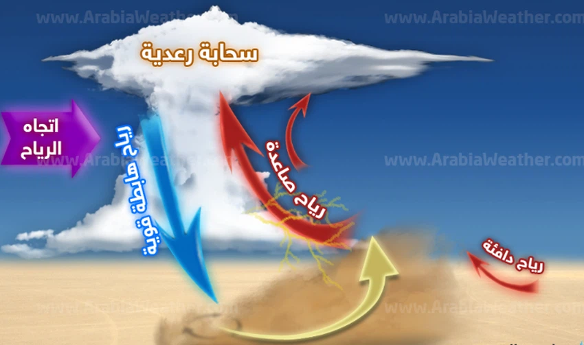 كما ويُتوقع أن يترافق نشاط السحب الركامية الرعدية على نشاط للرياح الهابطة، ما قد يعمل على نشوء موجات غبارية محلية تعمل على تدني لمدى الرؤية الأفقية وربما انعدامها في بعض المناطق.