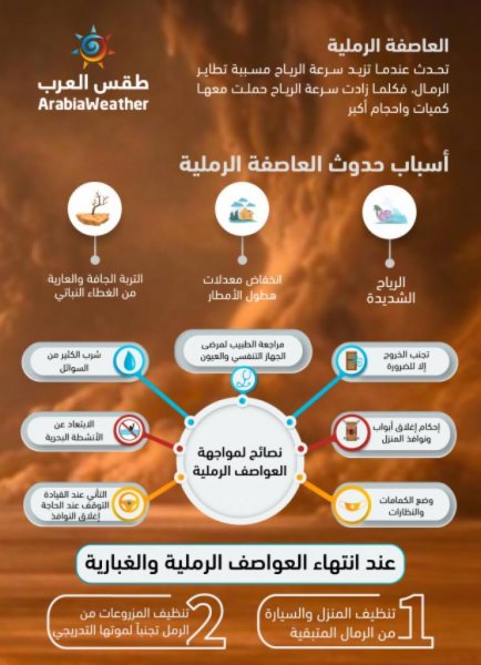 كما وقد تمتد تأثيرات هذه السُحب نواحي مدينة جدة، على شكل نشاط للرياح المثيرة للأتربة والغبار، مايستوجب على مرضى الجهاز التنفسي والعيون أخذ الحيطة والحذر واتباع الإجراءات الوقائية للتعامل مع مثل هذه الظروف الجوية.