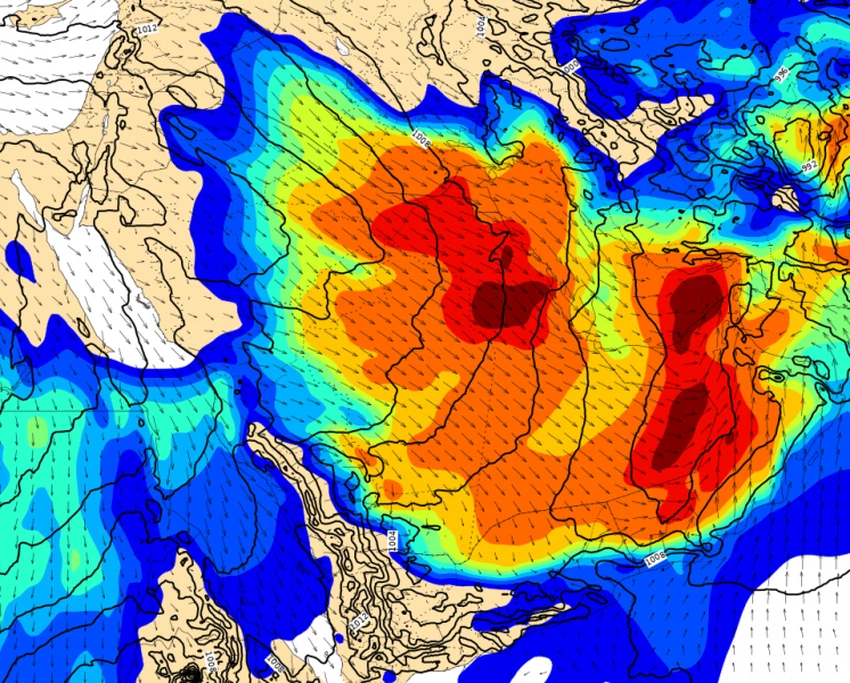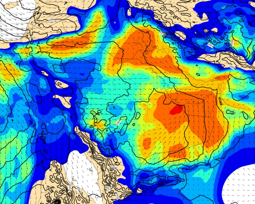 طقس العرب - م. ناصر حداد – تتأثر الجزيرة العربية اعتباراً من اليوم الثلاثاء الموافق 26 فبراير 2019، وحتى الجمعة، بالعديد من الموجات الغبارية والتي تعصف بالعديد من دول الخليج العربية، بحدة متفاوتة، فيما تصل الغبار الى ذروتها يوم الجمعة.
