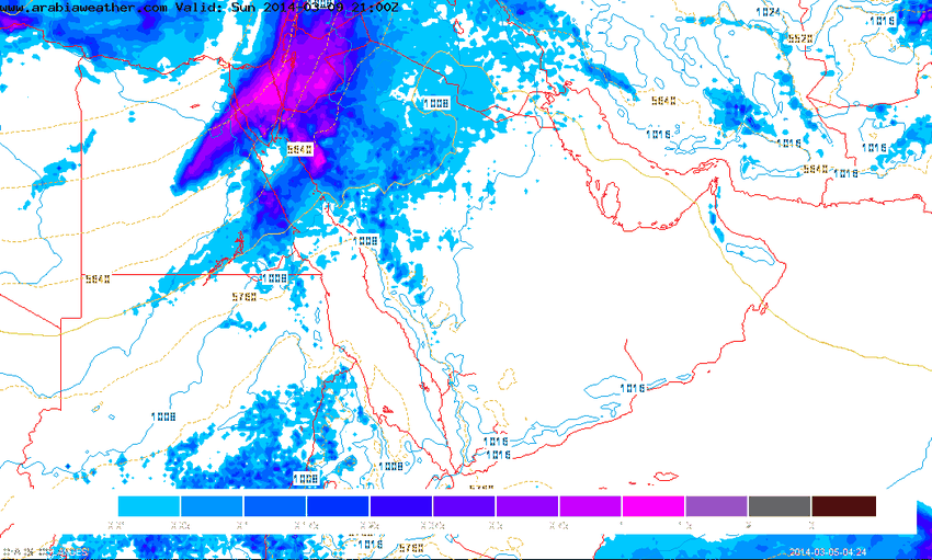 الحالة المطرية تُصنّف بأنها قوّية الفعالية لذا يجب التحضُر لها والتحذير منها مُبكراً، و يتوقع تأثيرها بشكل أو بآخر على المناطق المذكورة من المملكة من يوم السبت 8-3-2014 و تستمر بالتأثير بصورة متفاوتة خلال بقيّة أيّام الأسبوع بحيث تكون ذروة الحالة بمشيئة الله يومي الأحد والإثنين.