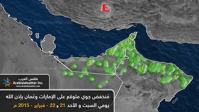 موقع ArabiaWeather.com- عمر الدجاني- تُشير آخر بيانات نماذج التنبؤات العددية المُختلفة المُشغلة لدى "طقس العرب" إلى أن دولة الإمارات على موعد مع تقلُبات جوية كبيرة خلال نهاية الأسبوع الحالي كنتيجة لتأثير مُنخفض جوي خاصة يومي السبت والأحد.