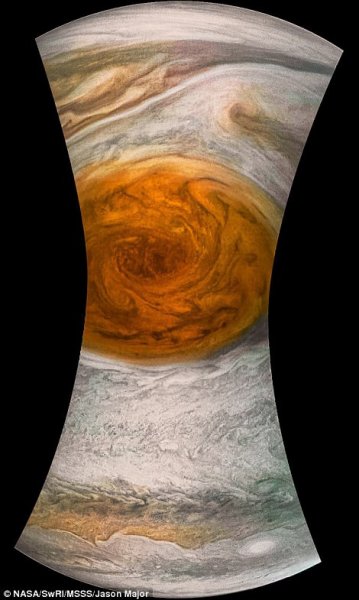 وقال ستيف ليفن الذي يقود المشروع العلمي لبعثة المسبار جونو بالمختبر "هذه العاصفة أكبر من الأرض كلها. إنها موجودة منذ مئات السنين. نريد أن نعرف ما الذي يحركها".
