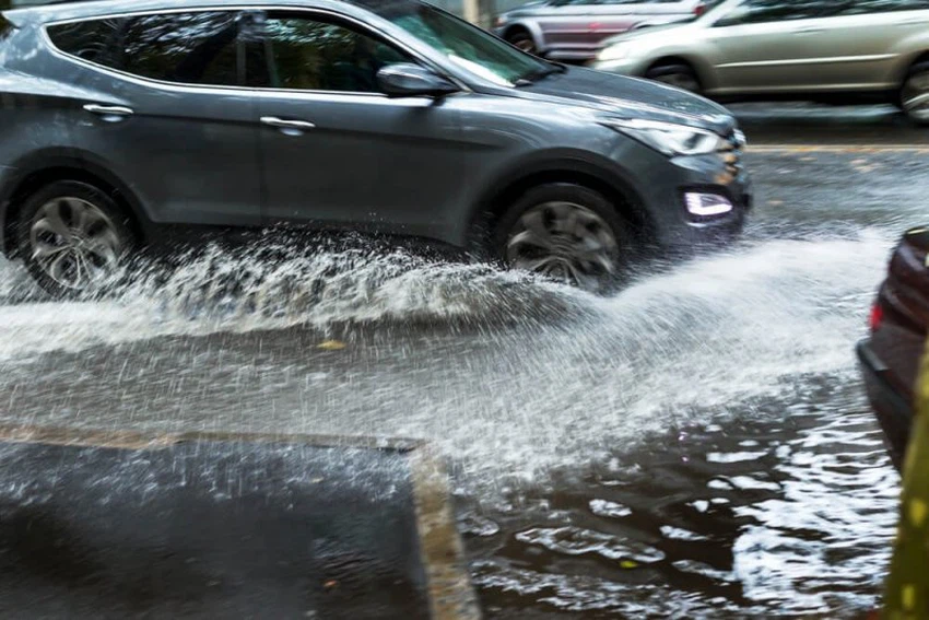8. احترس من برك المياه وتجمعات مياه الأمطار: يمكن أن تؤدي القيادة في المياه الراكدة إلى حدوث الانزلاق المائي، وهو عندما تفقد قوة الاحتكاك وتنزلق السيارة على سطح الطريق.