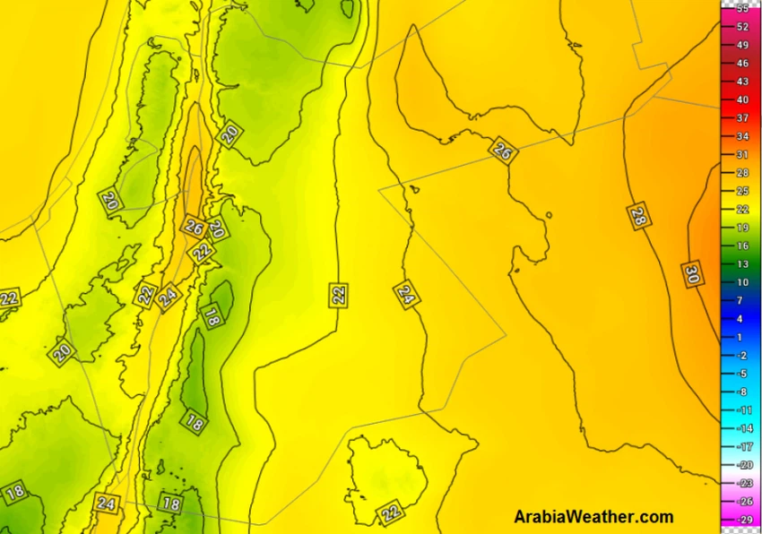 وفي التفاصيل، تشير الخرائط الجوية الى تراجع الكتلة الهوائية الحارة نحو الشرق، بعيداً عن أجواء المملكة عدا المناطق الشرقية حيث تبقى الأجواء حارة نسبياً.