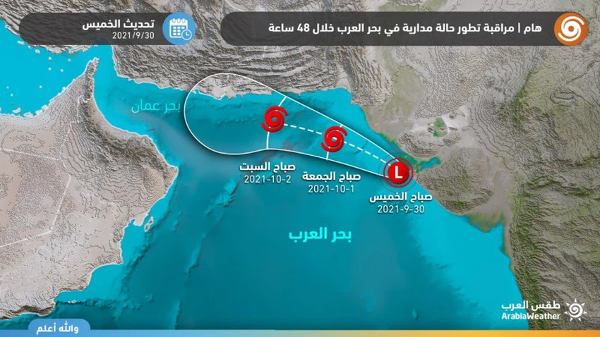 ونظراً لصعوية توقع مسار وشدة الحالة المدارية فيدعوا طقس العرب إلى ضرورة متابعة التحدثات الجوية أولاً بأول.