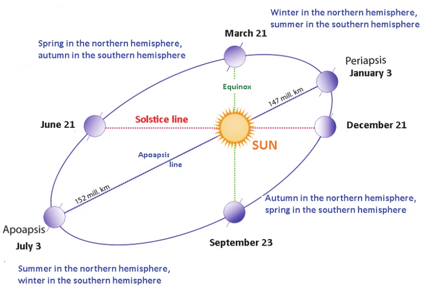 ويتغير بُعد الأرض عن الشمس أثناء دوران الأرض في مسارها البيضوي حول الشمس، وفي الوقت الحالي، وبالرغم من أن نصف الكرة الشمالي يميل بعيدًا عن الشمس خلال فصل الشتاء، إلا أنه يكون أقرب ما يكون إلى الشمس (في نقطة الحضيض)، لكن خلال الفترة التي اخضرت فيها الصحراء، كان نصف الكرة الشمالي أقرب ما يكون إلى الشمس خلال فصل الصيف (بالإضافة إلى أن نصف الكرة الشمالي يميل باتجاه الشمس خلال فصل الصيف).