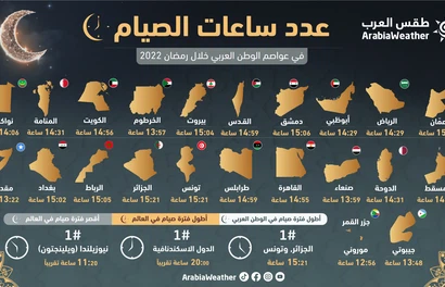 تعرّف على أقصر وأطول ساعات الصيام في كل الدول العربية خلال رمضان 2022/ 1443 من هنا