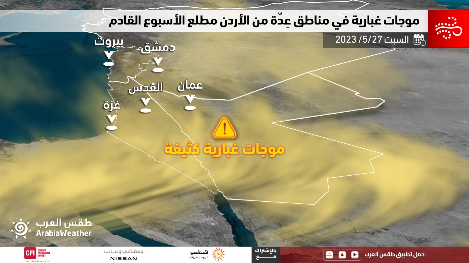 طقس العرب - يُعتبر من المُتأخر تأثر الأردن بمُنخفصات جوية خماسينية نهايات شهر أيار/مايو، إلا أن المملكة قد تأثرت بالفعل يوم السبت 27-5-2023 بمنخفض خماسيني عميق حيث نشطة سرعة الرياح و سادة أجواء مُغبرة في مُعظم المناطق بالإضافة إلى تشكل سحب رعدية ترافقت ببعض الهطولات المطرية و رياح هابطة أدت إلى حدوث عواصف ترابية في بعض المناطق بما فيها منطقة مطار الملكة علياء الدولي. و بالرغم من هذه الأجواء، إلا أن الخرائط الجوية تُشير إلى توقعات بتعمق حوض علوي بارد شرقي البحر الأبيض المُتوسط يومي الأحد و الإثنين و يتصادف ذلك مع تدفق تيارات هوائية رطبة شبه استوائية في طبقات الجو المُختلفة الأمر الذي يؤدي إلى اشتداد كبير في حالة عدم الاستقرار الجوي!
