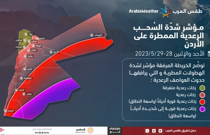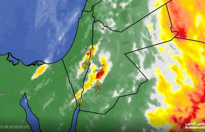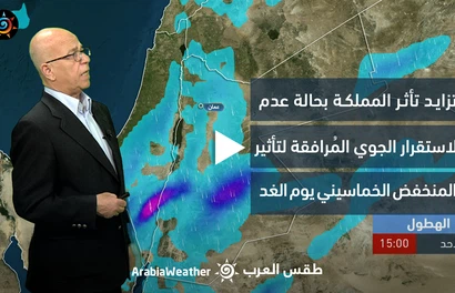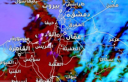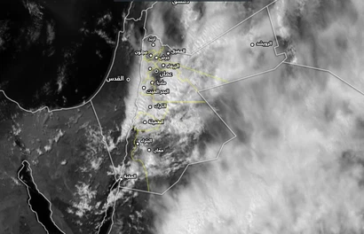 طقس العرب - تتأثر المملكة الأردنية بمنخفض جوي خماسيني بالتزامن مع حالة من عدم الاستقرار الجوي ، ويُتوقع أن يستمر الطقس غير المُستقر والمُغبر غدًا مع فرص لزخات رعدية من المطر بأجزاء متفرقة من المملكة، تتركز في المناطق الجنوبية والجنوبية الشرقية حيث تكون غزيرة أحياناً ومترافقة مع تشكل العواصف الرملية محلياً وتساقُط البَرَد