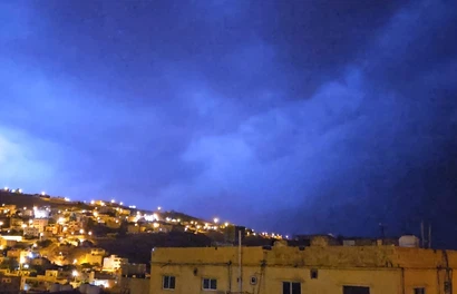 طقس العرب - سحابة رعدية شديدة تؤثر على اجزاء من غرب عمان و البلقاء مصحوبة بَبَرد كبير الحجم تتوسع الى عدة مناطق