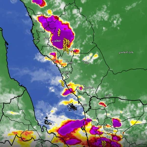 طقس العرب - تُظهر صور الأقمار الإصطناعية استمرار تدفق السحب على معظم محافظات شمال السلطنة تتخللها سحب ركامية خاصةً على محافظات شمال و جنوب الباطنة و مسقط وشمال محافظة الداخلية، تترافق بهطول أمطار مُتفاوتة الغزارة مصحوبة بالرعد مع إحتمالية جريان الأودية والشِعاب في بعض المناطق بمشيئة الله.