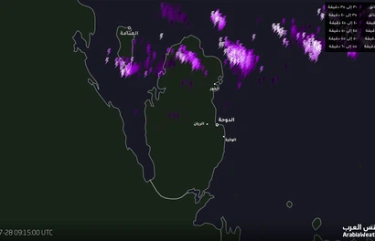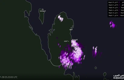 طقس العرب - تشير صور الأقمار الاصطناعية الواردة لدى مركز طقس العرب الإقليمي إلى تأثر دولة قطر مع صباح اليوم بأحوال جوية غير مُستقرة ينتج عنها تساقط الأمطار الغزيرة المصحوبة بحدوث العواصف الرعدية ونشاط كبير للرياح السطحية، وشملت الأمطار الرعدية المناطق الساحلية بمافيها الدوحة امتداداً نحو بعض المناطق الداخلية ويُخشى من خطر ارتفاع منسوب المياه في الطرقات نتيجة غزارة الأمطار.