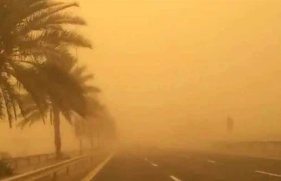 غائم جزئي إلى غائم أحياناً، مع فرصة تكون السحب الركامية الممطرة على بعض المناطق الشرقية والغربية نهاراً، مع ارتفاع تدريجي في درجات الحرارة، والرياح جنوبية شرقية إلى شمالية شرقية خفيفة إلى معتدلة السرعة، ونشطة إلى قوية أحياناً مع نشاط السحب مثيرة للغبار واألتربة تؤدي إلى تدني مدى الرؤية الأفقية، وسرعتها من 20 إلى 30 تصل إلى 50 كم/س، والبحر مضطرب الموج خاصة مع نشاط السحب في الخليج العربي ومضطرب إلى متوسط الموج في بحر عمان.
