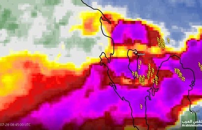 طقس العرب - تُظهر خرائط النمذجة الحاسوبية في مركز طقس العرب إلى استمرار تموضع كتلة هوائية حارة وجافة فوق أغلب مناطق شبه الجزيرة العربية خاصةً الشرقية منها مؤدية إلى تعمق المُنخفض الجوي الحراري في الرُكن الجنوبي الشرقي، وذلك بالتزامن مع تدفق كُتلة هوائية أقل حرارة فوق العراق وشمال الجزيرة العربية، يؤدي ذلك الى تشكل فرق كبير في قيم الضغط الجوي بين تلك المنطقتين.